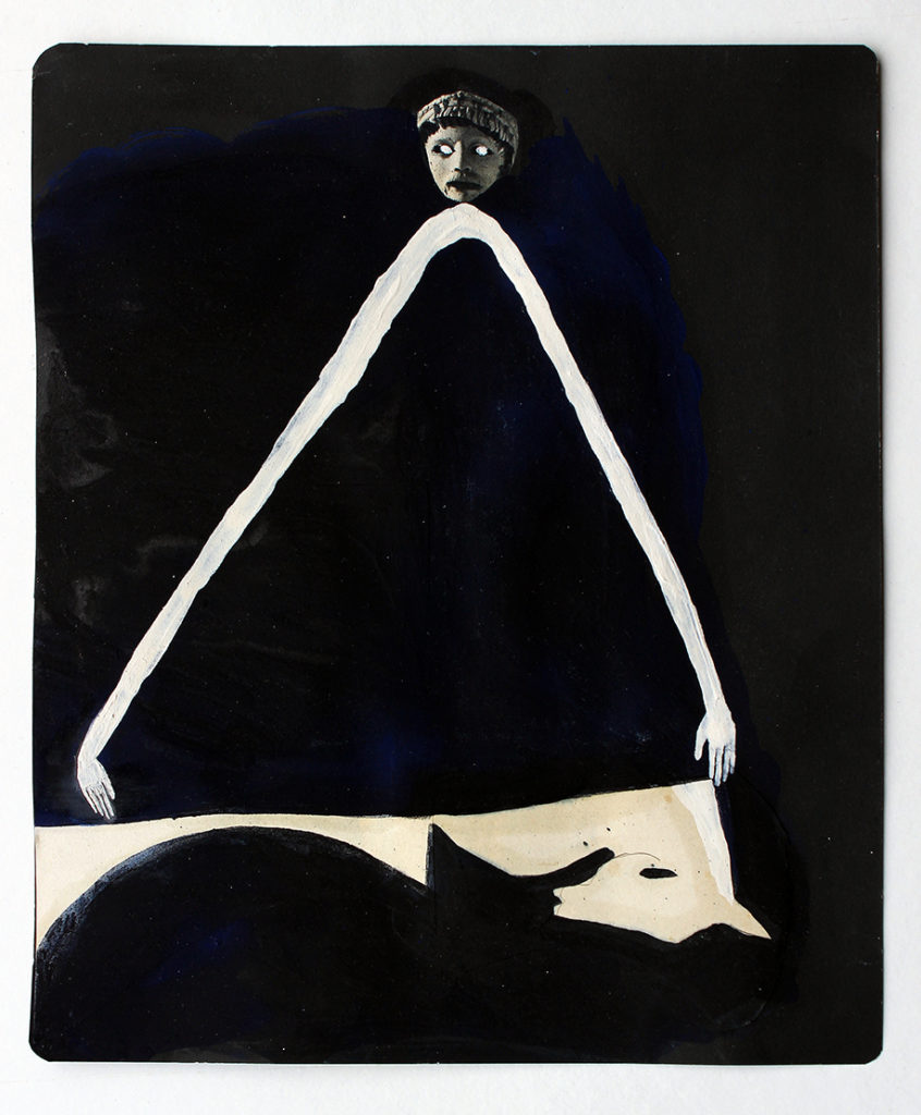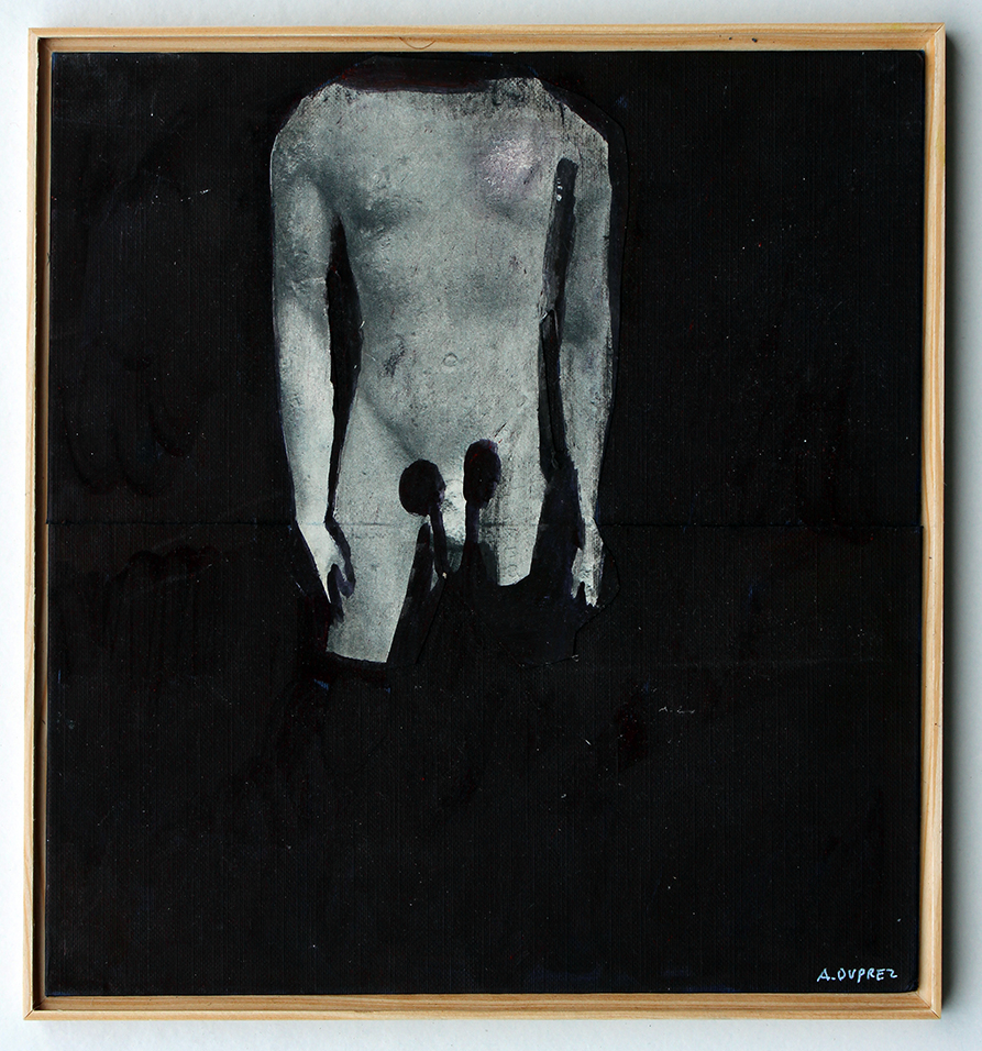 Au centre du travail d’Alexandra Duprez se trouve le corps humain, un corps qui se dédouble, s’efface et se transforme, pour devenir un être en constante mutation, mi-animal, mi-végétal. Par ajout et recouvrement, couche après couche, l’artiste crée ce qu’elle appelle des « lambeaux d’images », fragments d’une histoire sans cesse réinventée, aux ramifications foisonnantes. L’oeil s’égare, comme dans une forêt métaphorique née de l’inconscient de l’artiste. Ses motifs récurrents ouvrent un chemin vers l’inquiétante étrangeté de son théâtre intérieur. Karen Louÿs